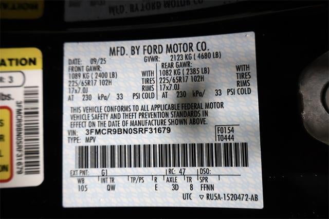 Experience adventure with this brand-new 2025 Ford Bronco Sport Big Bend in striking Shadow Black! This rugged SUV combines capability with comfort, featuring a turbocharged 1.5L EcoBoost engine delivering 181HP and intelligent 4WD with Selectable Terrain Modes for any adventure.