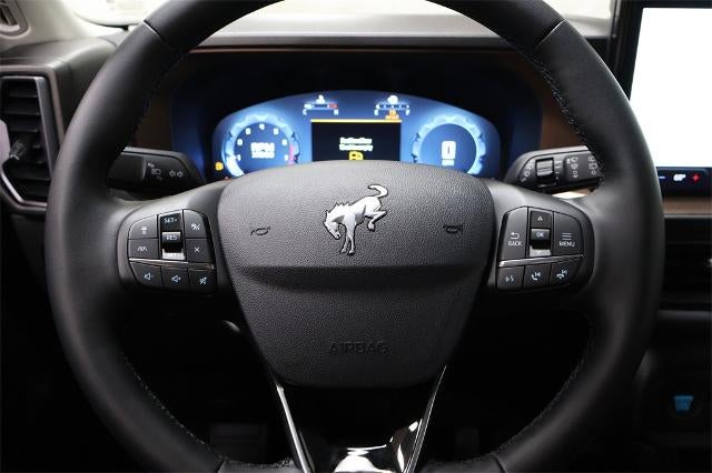 ABS brakes, Active Cruise Control, Alloy wheels, Compass, Electronic Stability Control, Front dual zone A/C, Heated door mirrors, Heated front seats, Illuminated entry, Low tire pressure warning, Remote keyless entry, Traction control, 4-Wheel Disc Brakes, 6 Speakers, Air Conditioning, AM/FM radio: SiriusXM, AM/FM Stereo, Auto High-beam Headlights, Auto-dimming Rear-View mirror, Automatic temperature control, Brake assist, Delay-off headlights, Driver door bin, Driver vanity mirror, Dual front impact airbags, Dual front side impact airbags, Emergency communication system: SYNC 4 911 Assist, Four wheel independent suspension, Front anti-roll bar, Front Bucket Seats, Front Center Armrest, Front Driver/Passenger Seat Back Map Pockets, Front fog lights, Front reading lights, Fully automatic headlights, Garage door transmitter, Heated steering wheel, Knee airbag, Memory seat, Occupant sensing airbag, Outside temperature display, Overhead airbag, Overhead console, Panic alarm, Passenger door bin, Passenger vanity mirror, Power door mirrors, Power driver seat, Power passenger seat, Power steering, Power windows, Premium Trimmed Front Bucket Seats w/Ebony/Roast, Radio data system, Rain sensing wipers, Rear anti-roll bar, Rear Parking Sensors, Rear reading lights, Rear seat center armrest, Rear window defroster, Rear window wiper, Security system, SiriusXM, Speed control, Speed-sensing steering, Speed-Sensitive Wipers, Split folding rear seat, Steering wheel mounted audio controls, SYNC 4 w/Enhanced Voice Recognition, Tachometer, Telescoping steering wheel, Tilt steering wheel, Trip computer, Variably intermittent wipers, and Wheels: 18" Ebony Black-Painted Aluminum.