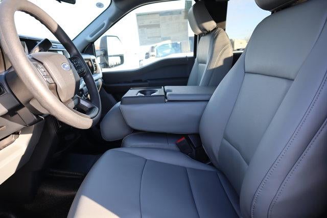 Ford Connectivity Package (1-Year Included), GVWR: 10,000 Lb Payload Package, Internet access capable: 5G Modem - Ford Connectivity Package, Order Code 600A (17" Argent Painted Steel Wheels, HD Vinyl 40/20/40 Split Bench Seat, Radio: AM/FM Stereo with MP3 Player, and SYNC 4), Snow Plow Prep Package, XL Chrome Package (Bright Chrome Hub Covers and Center Ornaments, Chrome Front Bumper, Chrome Rear Step Bumper, and Halogen Fog Lamps), 4-Wheel Disc Brakes, 410 Amp Dual Alternators, 6 Speakers, ABS brakes, Air Conditioning, AM/FM radio, Brake assist, Compass, Delay-off headlights, Dual AGM 68 AH Battery, Dual front impact airbags, Dual front side impact airbags, Electronic Stability Control, Emergency communication system: SYNC 4 911 Assist, Exterior Parking Camera Rear, Front anti-roll bar, Front Center Armrest w/Storage, Front reading lights, Fully automatic headlights, Heated door mirrors, Illuminated entry, LED Roof Clearance Lights, Low tire pressure warning, Outside temperature display, Overhead airbag, Overhead console, Panic alarm, Passenger cancellable airbag, Passenger vanity mirror, Platform Running Boards, Power door mirrors, Power steering, Power windows, Power-Sliding Rear-Window with Defrost, Privacy Glass, Rear step bumper, Remote keyless entry, Security system, Speed control, Split folding rear seat, Steering wheel mounted audio controls, Tachometer, Tailgate Step and Handle, Telescoping steering wheel, Tilt steering wheel, Traction control, Trailer Brake Controller, Trip computer, Turn signal indicator mirrors, Upfitter Switches (6), and Variably intermittent wipers.
