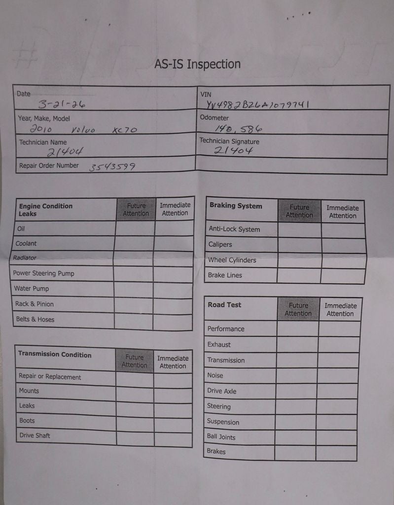 This 2010 Volvo XC70 3.2 delivers a unique blend of luxury, versatility, and all-weather capability, finished in Black Stone with a Black interior. Powered by a 3.2L inline-6 engine paired with a 6-speed Geartronic automatic transmission, it offers smooth, reliable performance with confident handling. Inside, it features XC unique T-Tec textile seating surfaces, front bucket seats, and a high-performance AM/FM/CD/MP3/WMA audio system for a comfortable and functional driving experience. With its distinctive wagon design and practical capability, this XC70 3.2 is well-suited for both daily driving and long-distance travel. Available now at Ricart Automotive Used Car Factory.