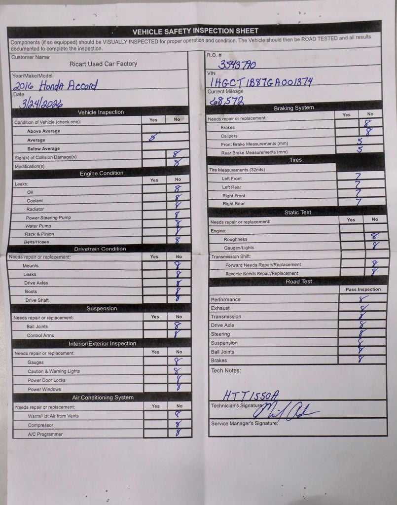 This 2016 Honda Accord EX-L delivers a refined blend of comfort, efficiency, and upscale styling, finished in White Orchid Pearl with a Black/Ivory leather-trimmed interior. Powered by a 2.4L 16-valve DOHC i-VTEC I-4 engine paired with a continuously variable transmission with Sport Mode, it offers smooth performance and excellent fuel efficiency for daily driving. Inside, it features heated front bucket seats, leather-trimmed seating, a 360-watt AM/FM/CD audio system, and a well-appointed cabin designed for comfort and convenience. With its sleek design and premium touches, this Accord EX-L is a standout choice for both commuting and long-distance travel. Available now at Ricart Automotive Used Car Factory.