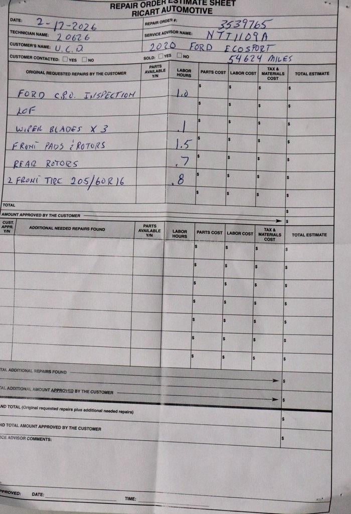 The 2020 Ford EcoSport SE FWD delivers compact versatility and efficient performance, finished in Smoke Metallic with an Ebony Black interior for a sleek, modern look. Powered by the EcoBoost® 1.0L I3 GTDi DOHC Turbocharged VCT engine paired with a 6-speed automatic transmission, it offers responsive power and smooth drivability for city and highway travel alike. Inside, a Power Moonroof brings an open, airy feel to the cabin, while SYNC® 3 with touchscreen technology enhances connectivity and convenience. With its practical size and turbocharged efficiency, this EcoSport SE is ready for everyday adventures. Available now at Ricart Automotive Used Car Factory.