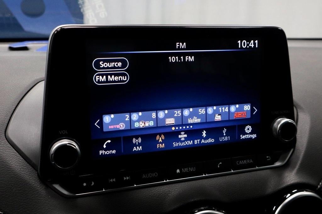 - Radio: AM/FM w/RDS/MP3/Aux-In -inc: 6 speakers plus 2 tweeters in A-pillar, 8" color display w/multi-touch control, streaming audio via Bluetooth®, Bluetooth® hands-free phone system, hands-free text messaging assistant, Siri eyes free, Google Assistant voice recognition w/Apple CarPlay and Android Auto, NissanConnect, (1) front USB connection port (type A), (1) additional front USB (type C) and (1) charge-only USB (type A) center console and SiriusXM radio w/advanced audio features