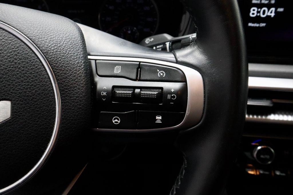 The 2024 Kia K5 GT-Line FWD delivers sporty performance and sleek sedan styling with a 1.6L turbocharged inline-4 engine paired with an 8-speed automatic transmission for smooth, responsive driving. Finished in Wolf Gray with a Black interior, this K5 blends bold design with modern comfort. Equipped with the GT-Line Premium Package, 10.25" touchscreen with navigation, and 18" gloss black finished alloy wheels, it adds advanced connectivity and distinctive styling to its well-appointed cabin. Available now at Ricart Automotive Used Car Factory.